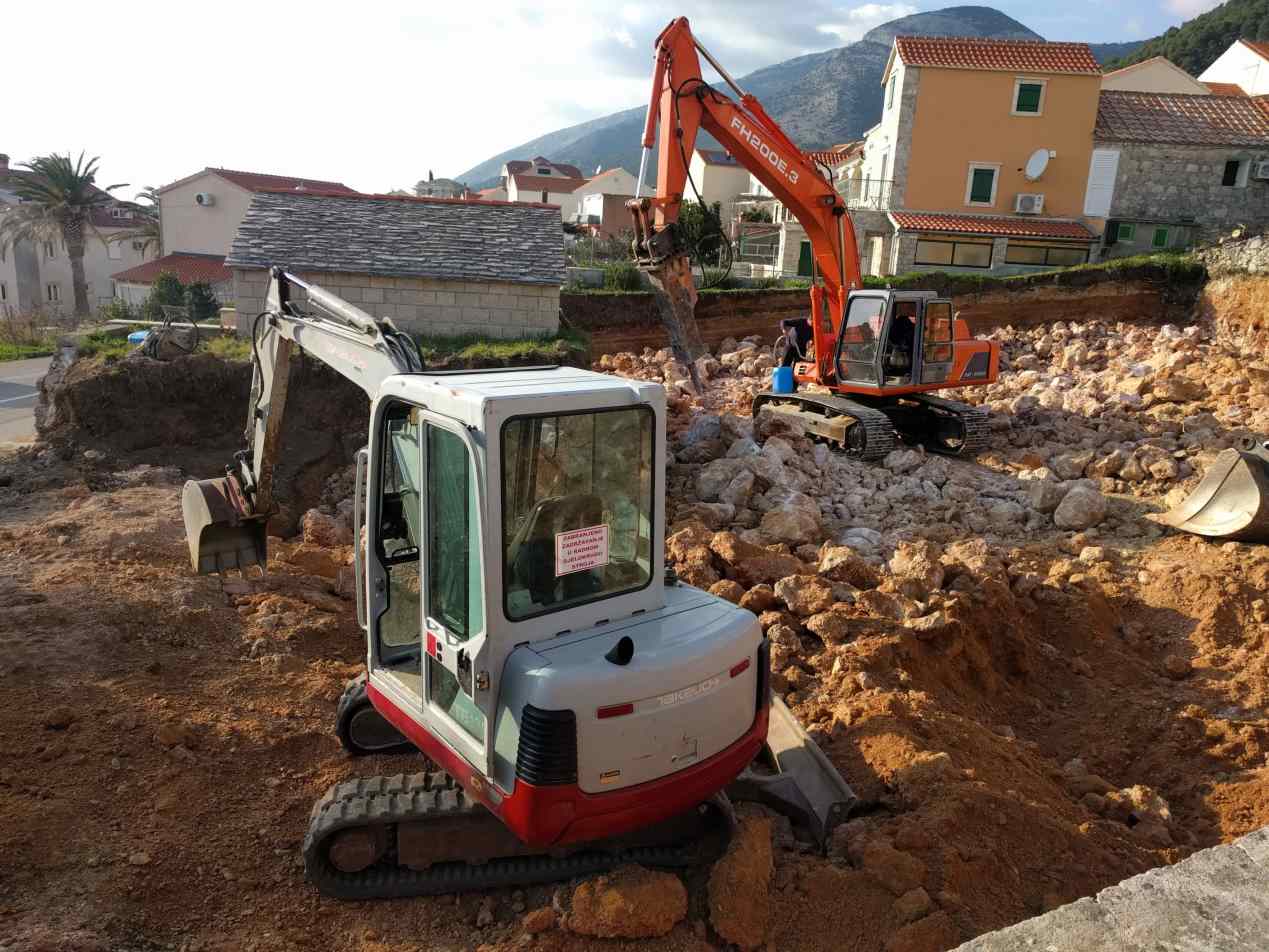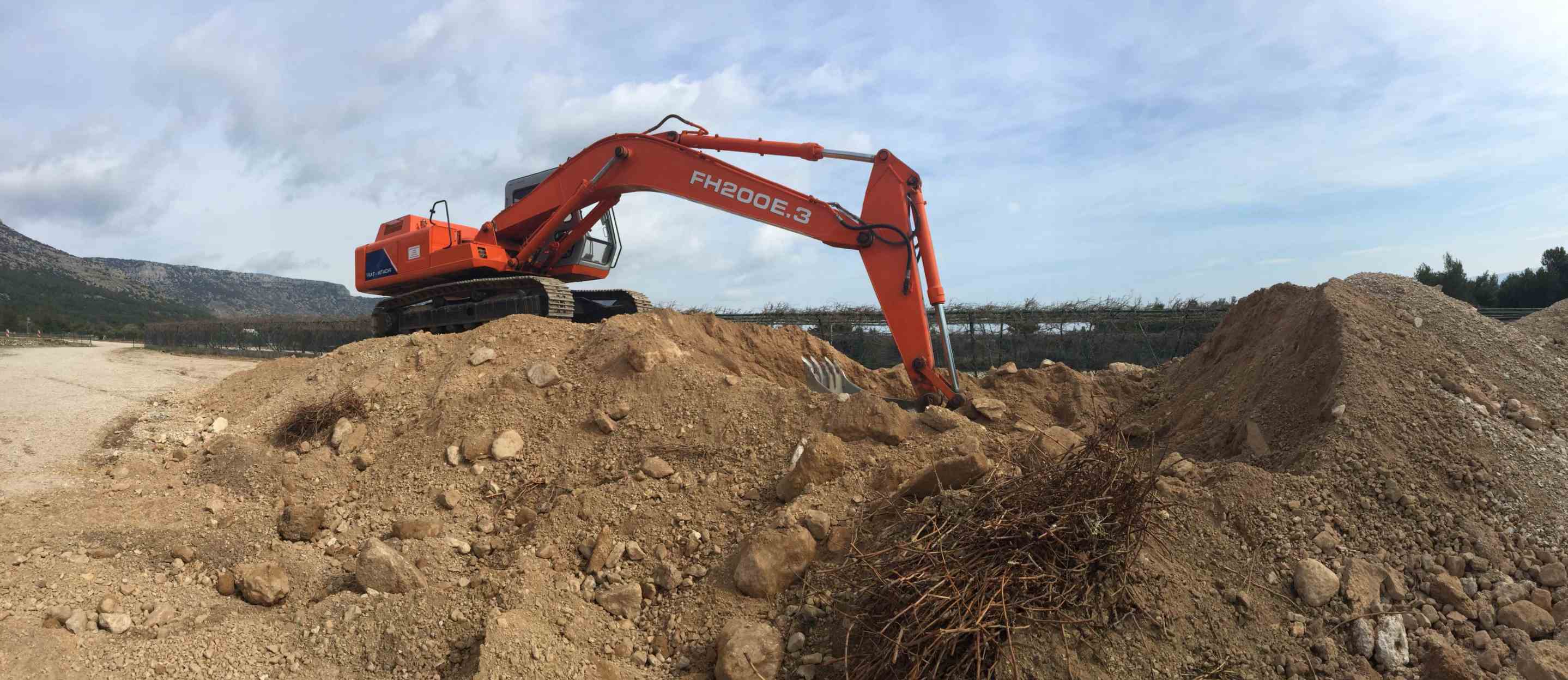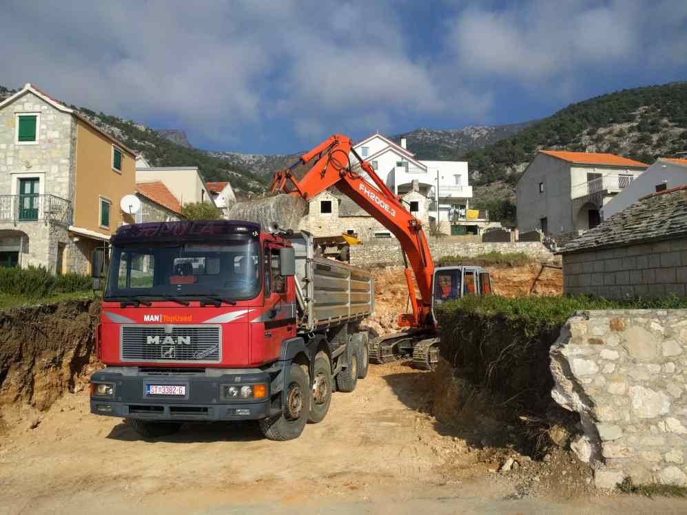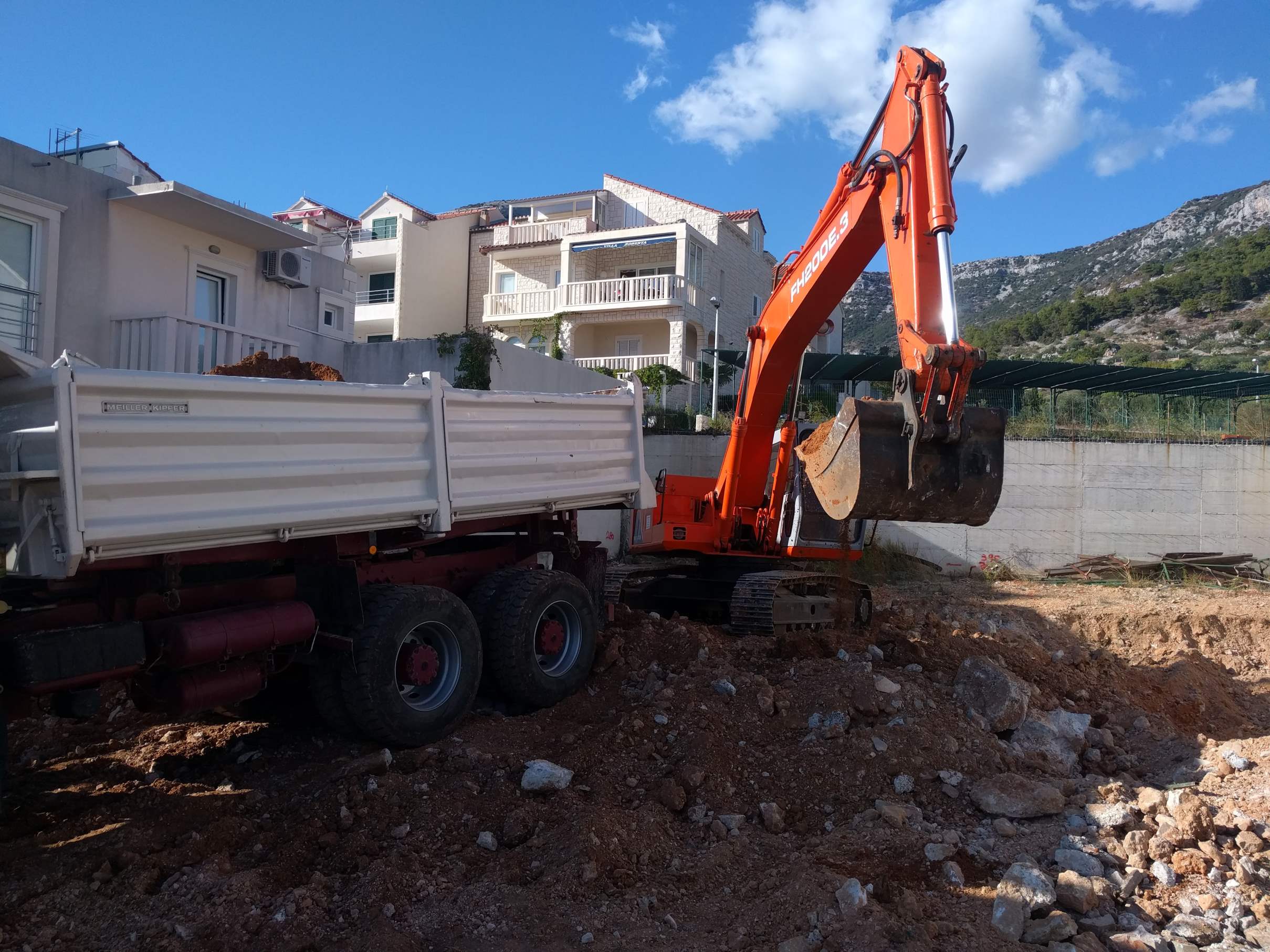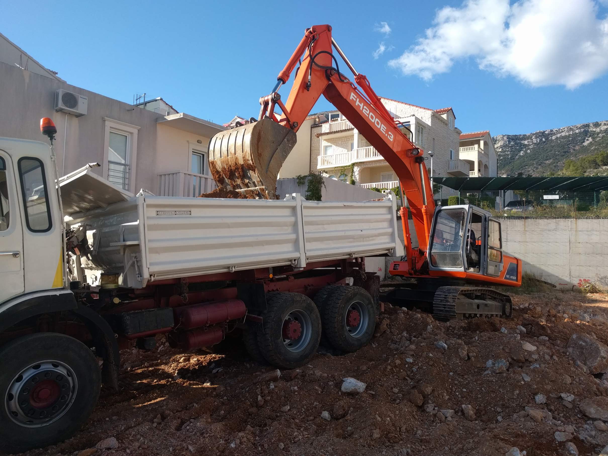 Nudimo sve vrste strojnog iskopa sa kvalitetnim strojevima FIAT HITACHI 200E.3 i mali bager Takeuchi TB 135. Posjedujemo utovarivač Allrod te 3 kamiona za prijevoz tereta od kojih jedan ima i kran dizalicu. U Bolu posjedujemo vlastiti deponij za istovar materijala.