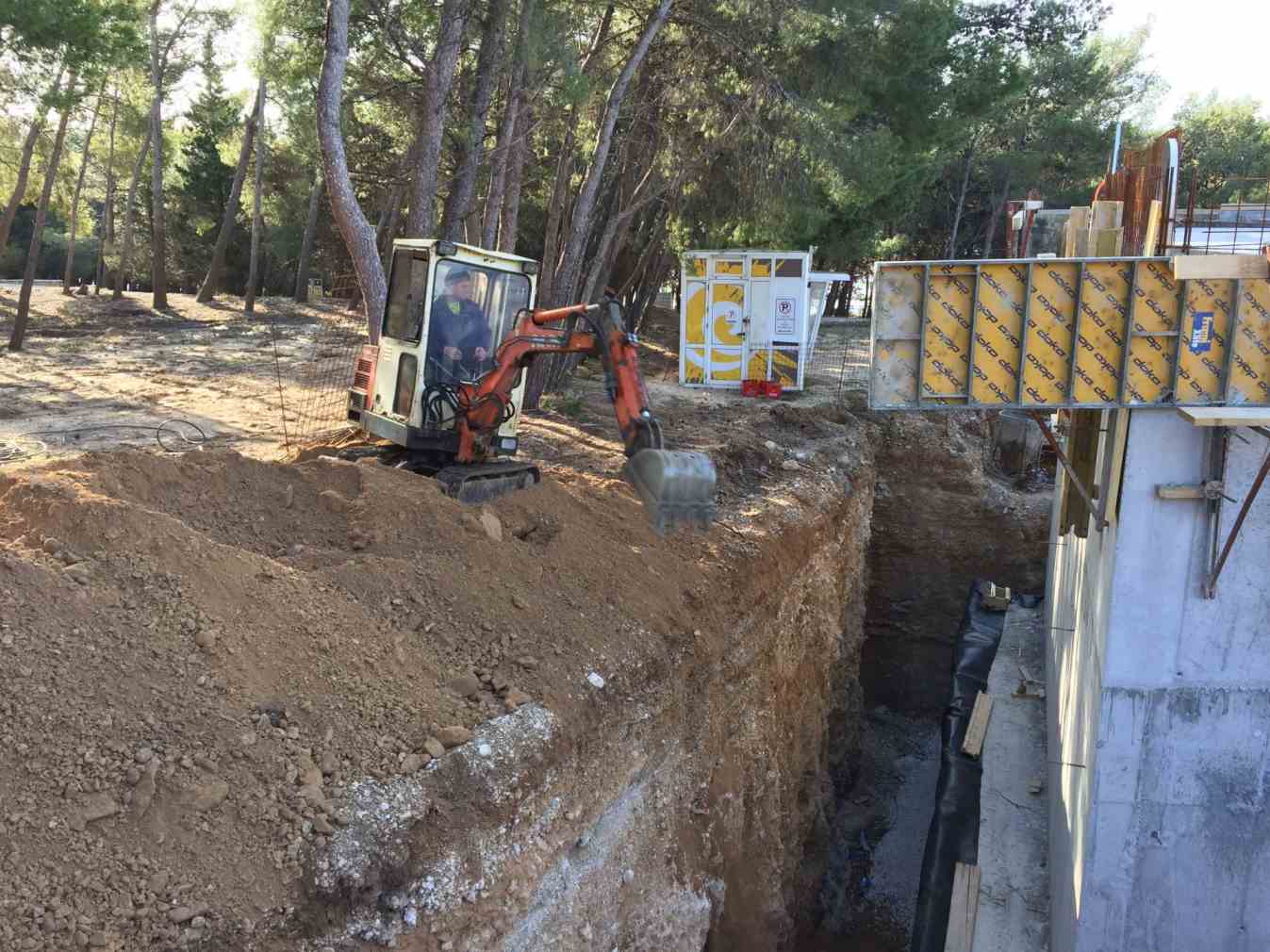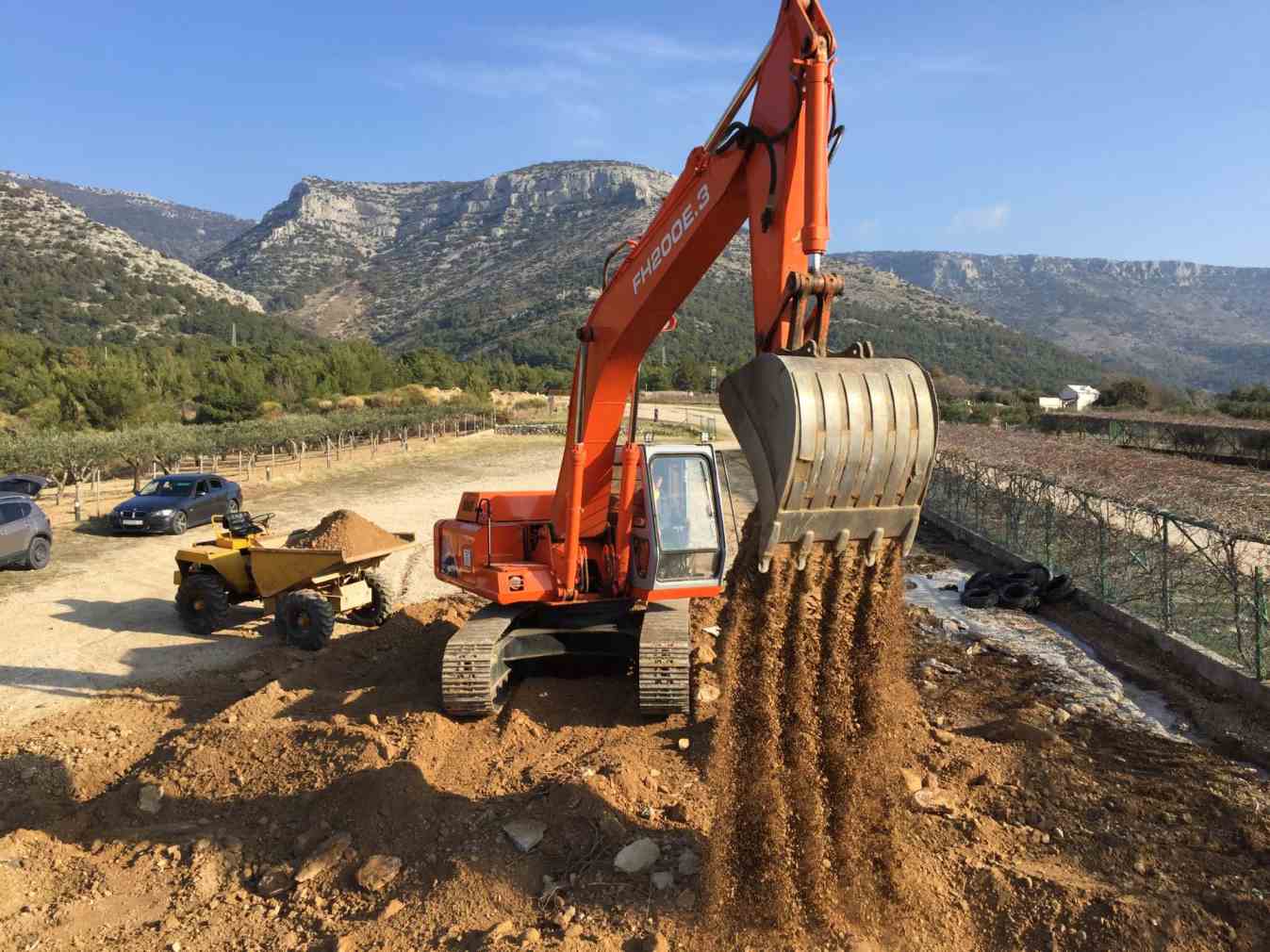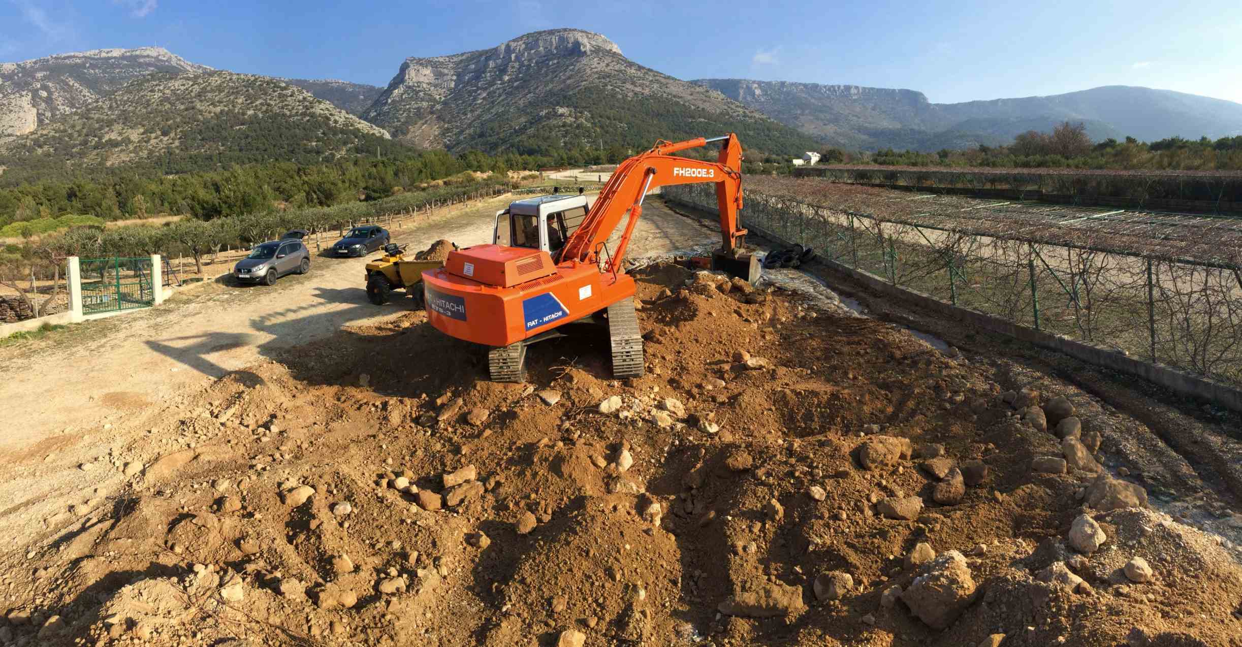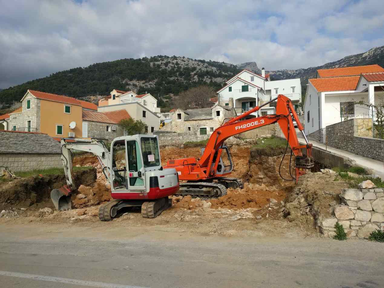 Nudimo sve vrste strojnog iskopa sa kvalitetnim strojevima FIAT HITACHI 200E.3 i mali bager Takeuchi TB 135. Posjedujemo utovarivač Allrod te 3 kamiona za prijevoz tereta od kojih jedan ima i kran dizalicu. U Bolu posjedujemo vlastiti deponij za istovar materijala.