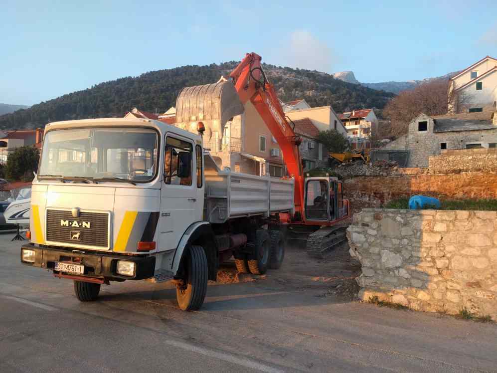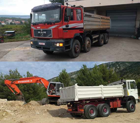 U mogućnosti smo ponuditi prijevoz i istovar materijala na području otoka Brača. Prijevog građevinskog materijala vršimo sa 2 MAN Kipper kamiona. Utovarivač Allrod ima mogućnost postave vila te rada kao viličar dok uslugu podizanja/spuštanja i prijevoza vaših plovila vršimo kamionom Axor sa pripadajućom dizalicom.